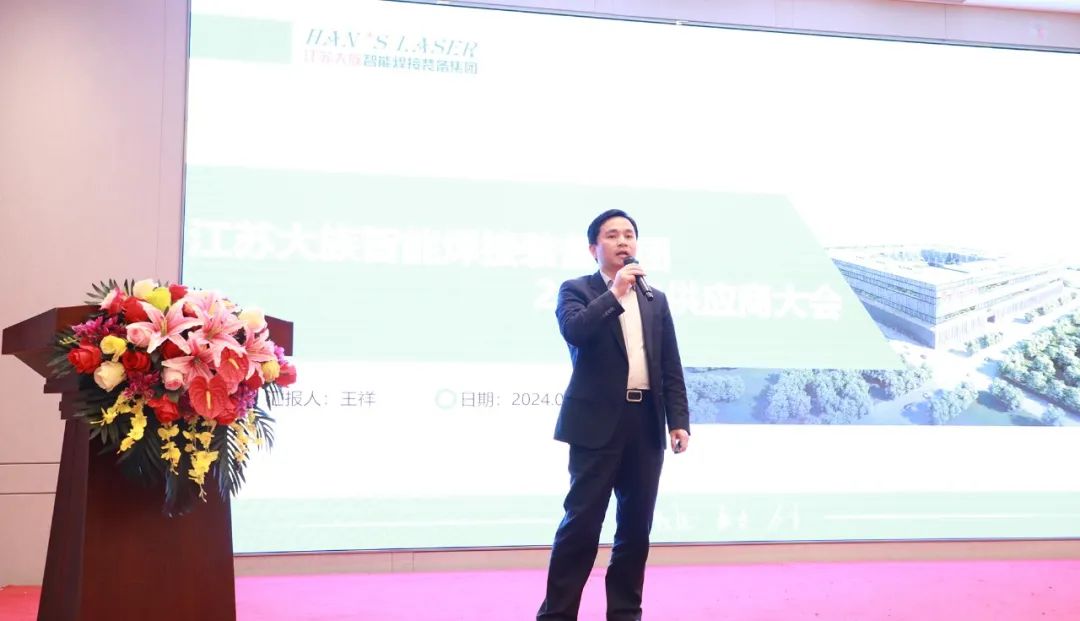 江蘇大族智能焊接裝備集團總經理王祥致辭,首先王總向出席大會的各位供應商伙伴們表示歡迎,對風雨同舟、互幫互助的合作伙伴表示感謝,并介紹了近年的行業發展形式。王總結合2024年市場發展機會與公司自身優勢,對公司的戰略規劃進行了闡述,王總表示江蘇大族深耕汽車行業與非汽車行業,在如今內卷的行業競爭情況下,江蘇大族依然保持穩步的增長,并獲得全球客戶的認可和肯定,離不開全體供應商合作伙伴的鼎力支持,希望通過本次供應商大會的圓滿召開,與新老伙伴加深了解,增進友誼,合作共贏,共創未來!
