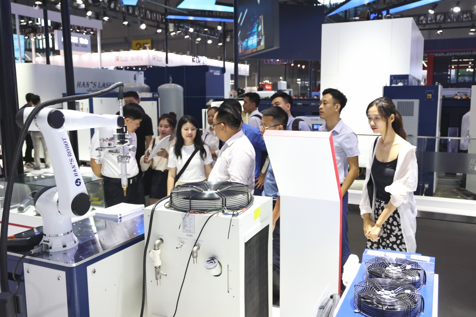 立足工業自動化和制造業痛點,在工博會專業展--數控機床與金屬加工展(MWCS)上,大族激光攜高速錫球雙工位焊接機、三卡盤重型切管機、直驅電機綜合展臺、高功率系列元器件等50+機械設備和眾多精美樣品精彩亮相,推進制造業數字化和綠色化協同轉型發展。